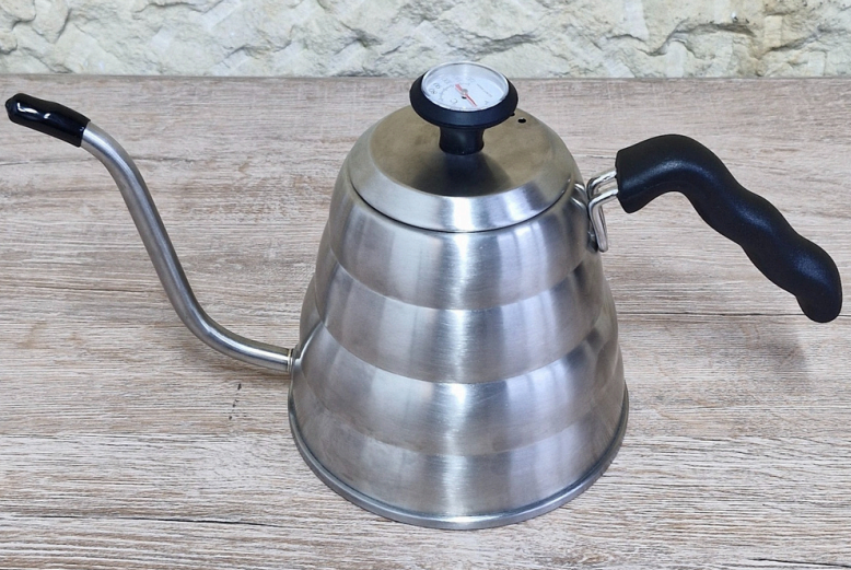 AeroPress (en versión invertida con vertido controlado) → no es lo más común, pero una jarra cuello de cisne ayuda en la precisión.